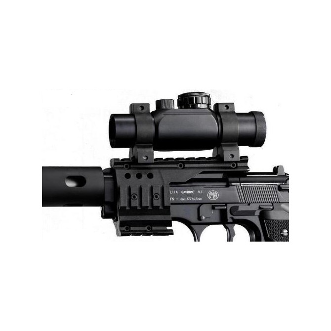 El fabricante alemán Umarex diseñó un Raíl superior Cola de Milano para equipar un Red Dot Sight, que es un visor de punto rojo con regulación de intensidad de luz para mejorar la precisión del disparo. También incluye un Raíl inferior para equipar linterna u otros elementos de precisión a media distancia como láser.
