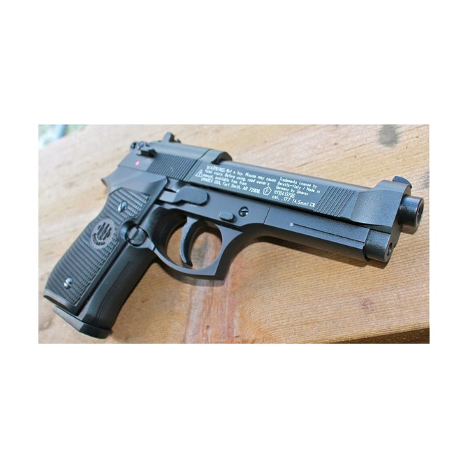 El fabricante alemán UMAREX diseñó un cañón de acero estriado, que mejorará la precisión del disparo. Además, la M92, tiene una potencia de tiro de 3,5 Julios, lo que proporciona una velocidad de salida de 120 m/s. Tiene un seguro manual para aumentar la seguridad del tirador y prevenir accionamientos accidentales.