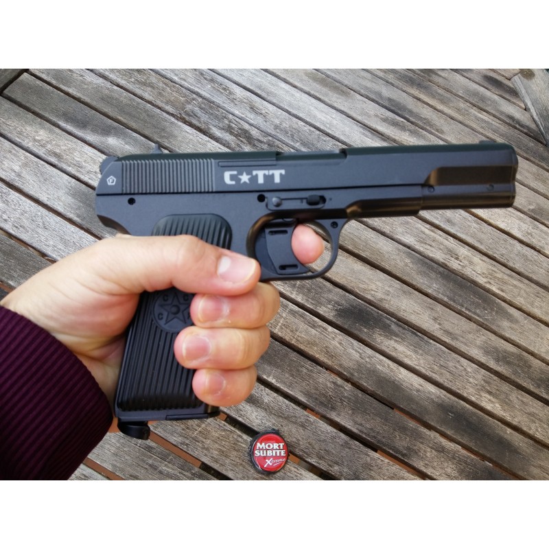 Fui a la tienda a por otro modelo de Crosman, pero al ver esta Tokarev al lado lo tuve claro. Es súper chula y al ser completamente de metal, la sensación al empuñarla es genial. Para los que les gusten las pistolas de CO2 de corte antiguo, es una pieza a tener muy en cuenta.