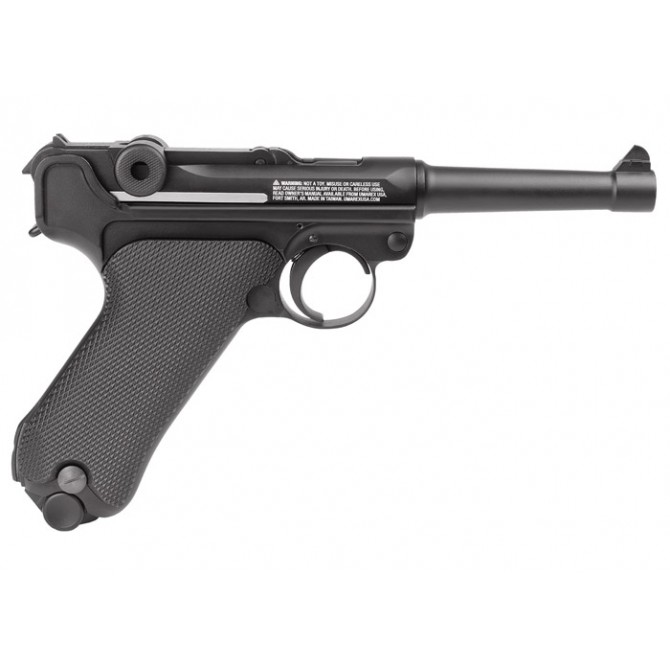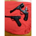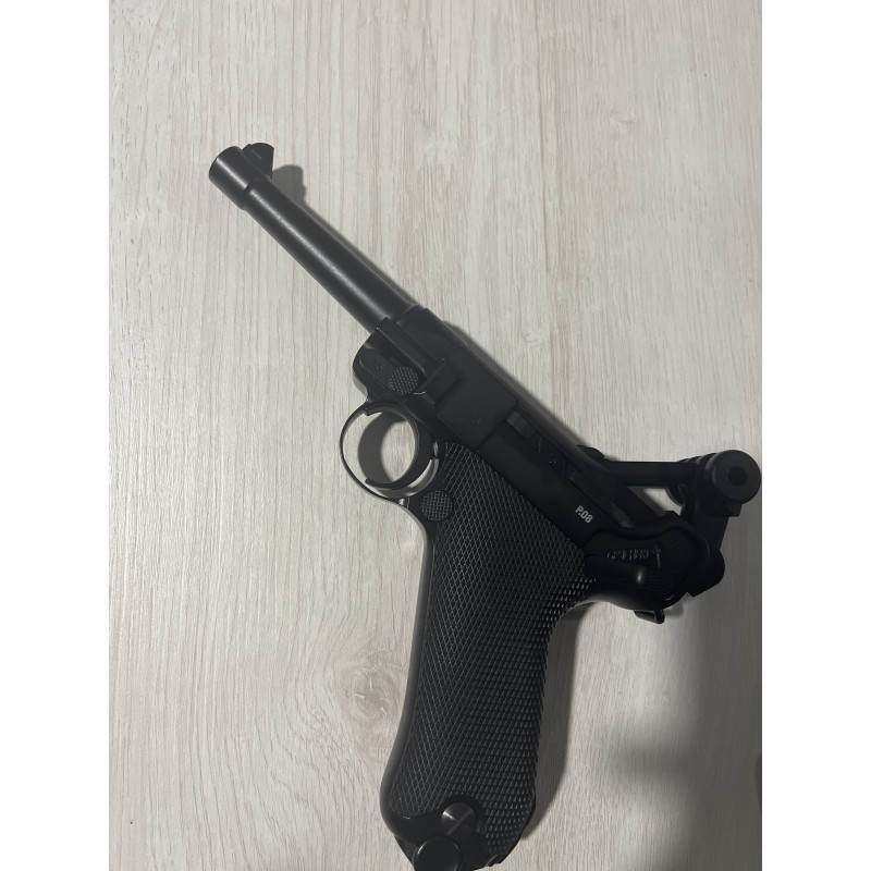 "Pistola de buena calidad. Muy similar en apariencia a la auténtica Luger P08. Bien construida y casi del mismo peso que la original. El problema es que no tiene demasiada potencia en los disparos, pero sufiiciente para hacer tiro deportivo a poca distancia."