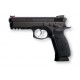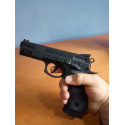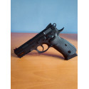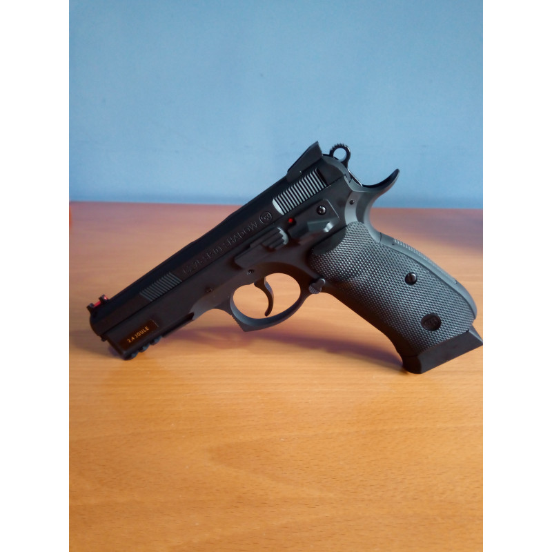 El fabricante de la República Checa CZ, fundada en 1936, ha diseñado en la empuñadura una estructura ergonómica y un agarre moderno en la empuñadura con paneles de fibra termo-plástica para mejorar la precisión y la estabilidad del tirador. En la parte inferior de la cacha permite incorporar una bombona de Co2 de 12 gramos.