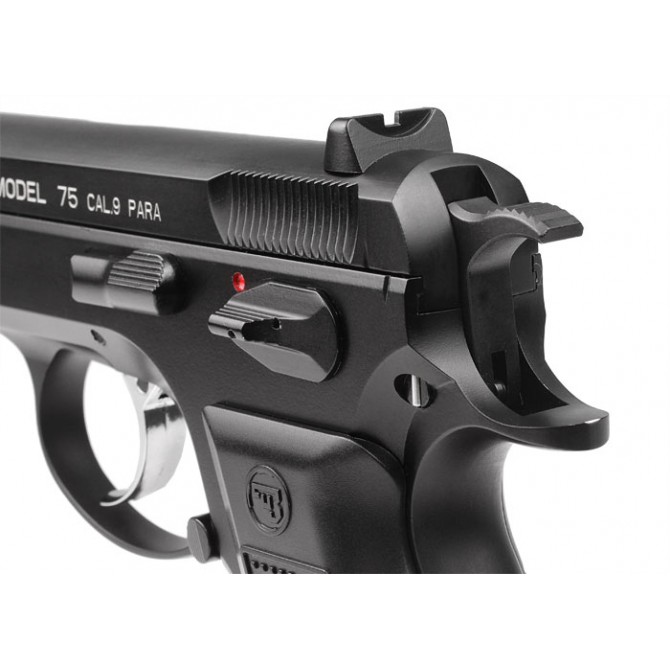 La principal característica de esta pistola es que es una réplica fiel de la pistola checa CZ 75, ya que tiene el mismo peso de la original 950 gramos y un armazón metálico, que hace que la CZ 75 sea una réplica idéntica y de alta gama, ideal para los clientes más exigentes. Además, esta pistola semi-automática tiene el cañón exterior de metal para mejorar la precisión del disparo.