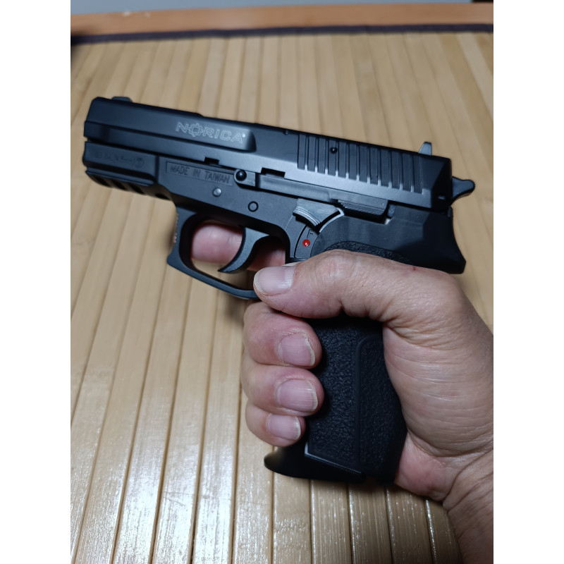 La N.A.C. 1702 de Norica incorpora miras abiertas fijas para disparos en condiciones ambientales de baja luminosidad, y también tiene un Raíl Picatinny inferior para instalación de láser o punto rojo. Así mismo, tiene un seguro manual para prevenir el accionamiento accidental de la pistola.