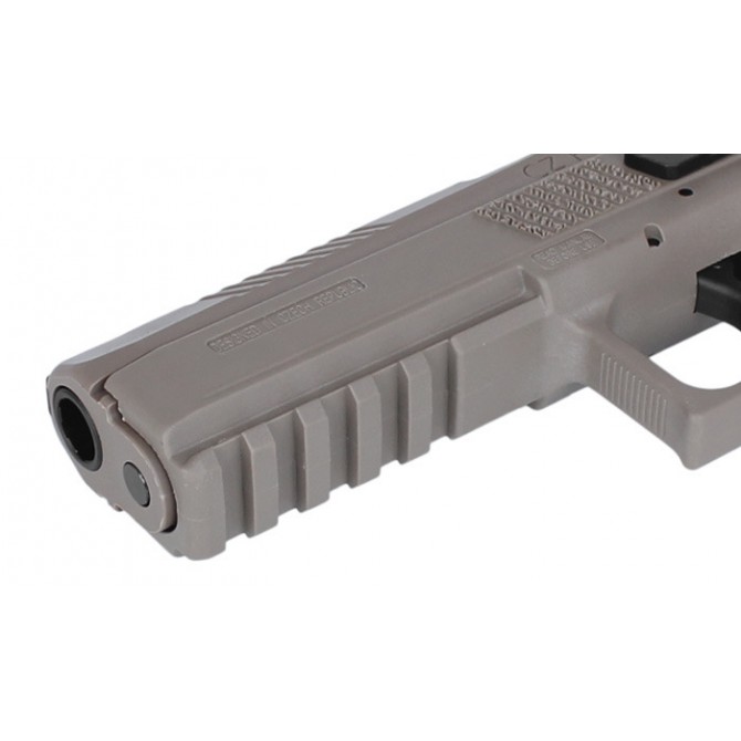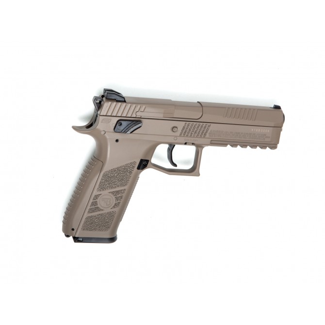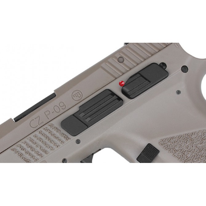 La CZ P-09 es una pistola táctica con un raíl Picatinny para el montaje de linterna o láser. Fabricada bajo licencia de CZ, es una copia fiel del modelo original con un aspecto y funcionamiento muy real. Además, tiene un cuerpo de fibra con miras abiertas regulables para disparos precisos.