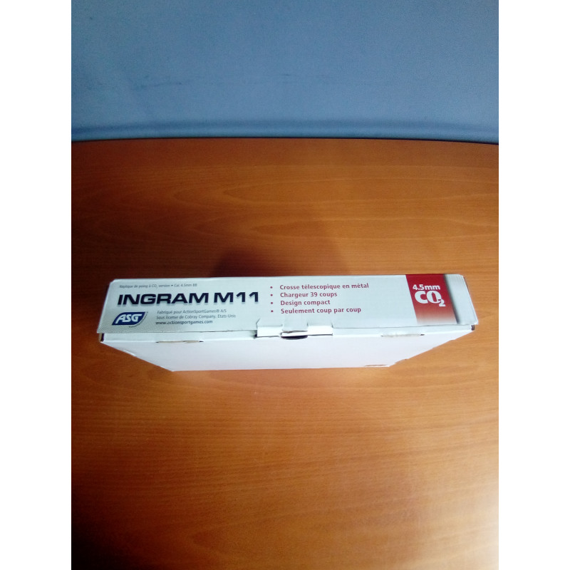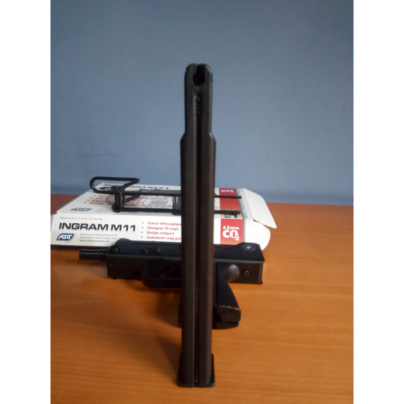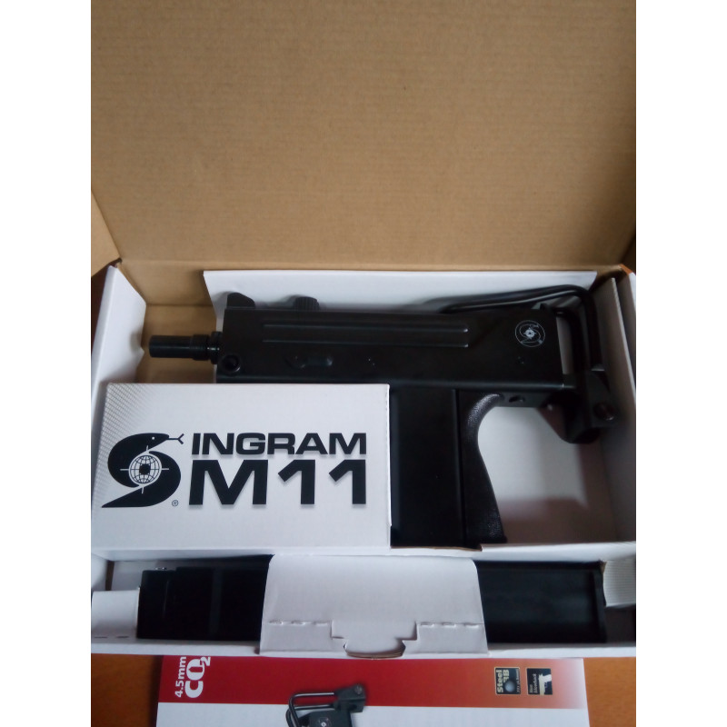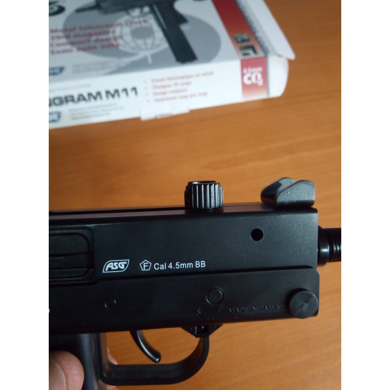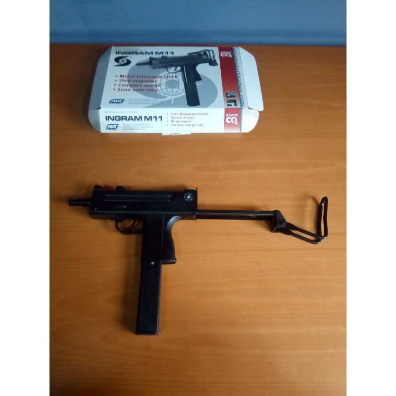 "El subfusil ASG Cobray Ingram M11 CO2 es una réplica del M11 original , pero los materiales parecen de baja calidad, el cargador en cambio ya es otra cosa y es lo normal pués llevá aloja la cápsula de CO2 , el culatin es retráctil , plegable y extraíble además que es de metal. Una réplica divertida con muchos tiros en el cargador. "