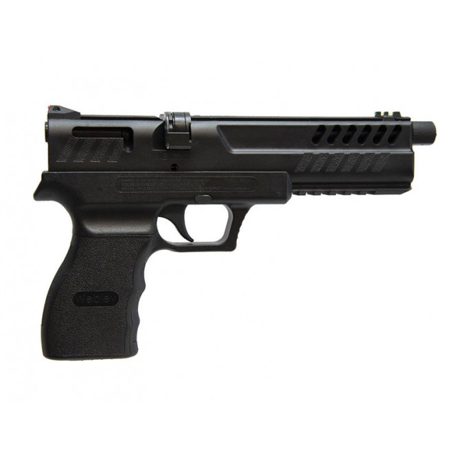 Los desarrolladores ingleses de Webley se encuentran en una búsqueda constante de avances tecnológicos, tal y como se puede apreciar en esta pistola de aire comprimido. Incorpora un sistema de carga por cerrojo lateral que reduce los tiempos de uso al máximo, y que permite 137 m/s de velocidad de salida.