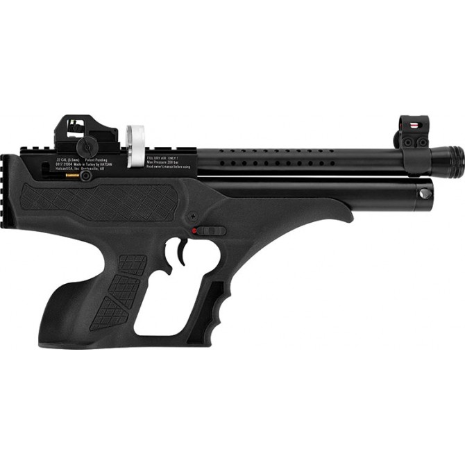 En cuanto a la óptica, esta pistola desarrollada por Hatsan incorpora alza y punto de mira fabricados en fibra óptica tipo Truglo, para mejorar al máximo la visibilidad del objetivo. A su vez, tiene incorporado un Carril Picatinny superior para montar elementos ópticos de precisión (visor, punto rojo, láser).
