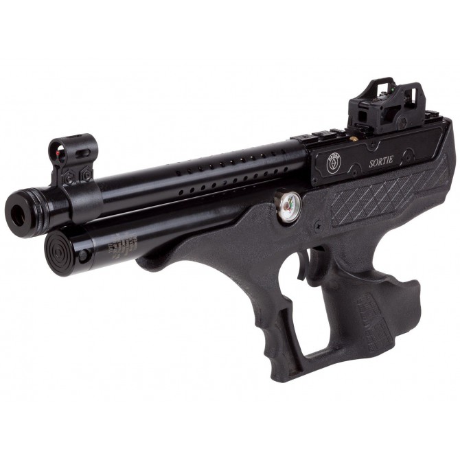 La PCP Sortie es una pistola que destaca tanto por los materiales de primera calidad con los que está fabricada, como por su excelsa versatilidad, ya que los desarrolladores de Hatsan han elaborado un diseño moderno que permite al tirador combinar entre pistola y carabina.