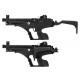 Mecanismo: Pistola ambidiestra con cañón de acero estriado, seguro de disparo y gatillo a dos tiempos.