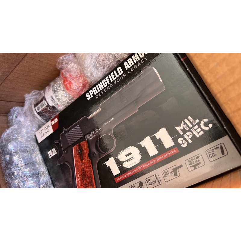 "Muy buena replica esta 1911 de Springfield Armory. Tiene mucha potencia y un gatillo muy sensible lo que permite disparos de mucha precisión. El cargador de 18 bolas va muy bien para sesiones largas de tiro. Después de 50 ó 60 disparos se empieza a notar la perdida de potencia, pero aun permite vaciar otro cargador. Sin duda es una muy buena elección."