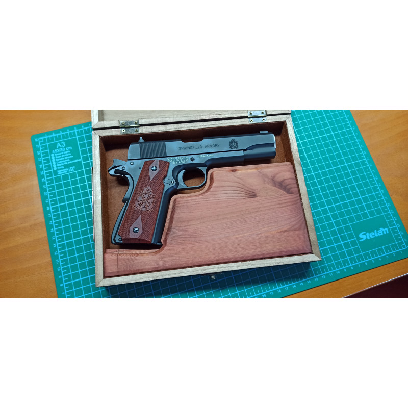 "Me fue un poco difícil decidirme por una 1911 pues hay mucho donde elegir, pero gracias a los consejos que me disteis por teléfono me decidí por esta y estoy muy contento con la elección. En la foto dentro de la caja a medida que le he hecho para guardarla."