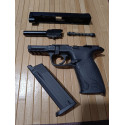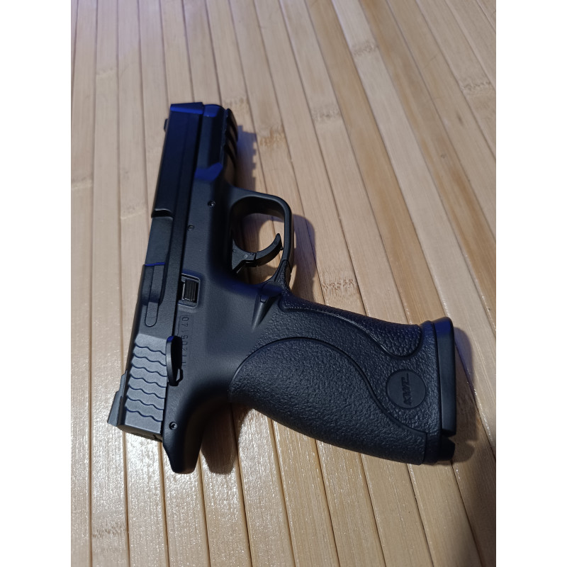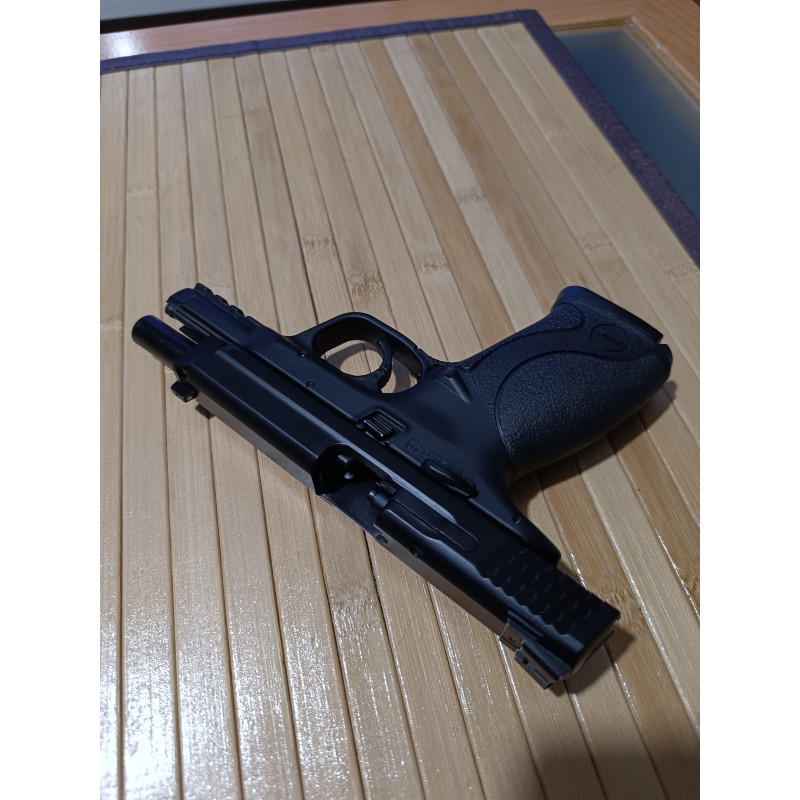 "El aspecto del arma es totalmente fiel a su homólogo real Smith & Wesson M&P 40 9 mm Parabelum, espectacular en el agarre, movimiento de la corredera al disparar totalmente real, peso perfecto y todo esto unido hace que el proyectil vaya exactamente donde lo deseas, apuntado muy rápido, al ser muy compacta hace que prácticamente levantarla y estar encarada al objetivo, espectacular, excelente compra."