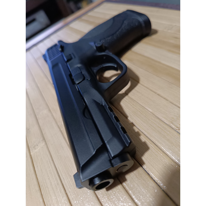 "Preciosa pistola, acabado totalmente real, aspecto, peso y funcionamiento increíble, un arma de muy buena calidad, sin marcajes oficiales, pero que gana en calidad de materiales y funcionamiento muy preciso, en el disparo te hace creer que manejas la Smith & Wesson real, buen retroceso y perfecto movimiento de la corredera para alimentar otro proyectil en la recamara, tan rápida como tú dedo y precisa como tú apunte, funcionamiento impecable, no ha fallado ni una sola vez, solo se para cuando se le acaba la munición y siempre pide más... Si buscas una réplica real ésta es la tuya, RECOMENDABLE 100x100."