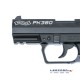 La Walther PK 380 es una pistola detonadora en calibre 9 mm PAK. El cargador cuenta con una capacidad para 8 cartuchos de munición de fogueo. Incorpora gatillo de doble acción y seguro manual.