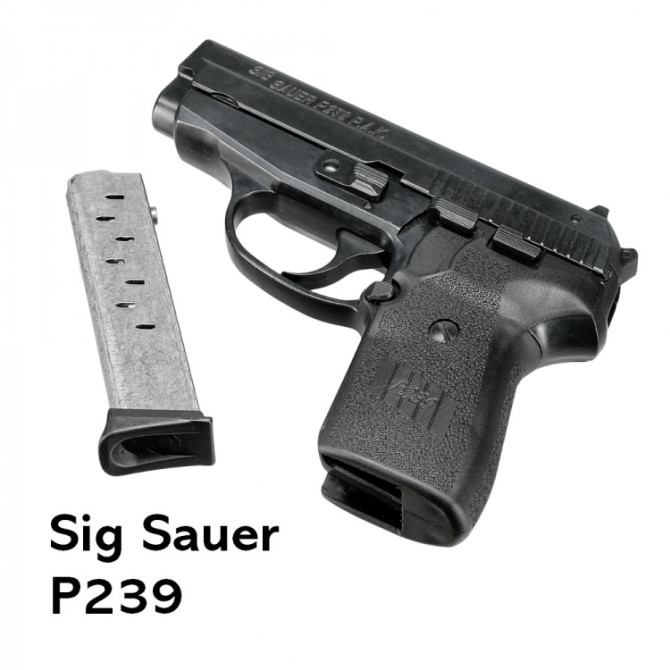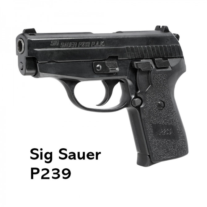 La Sig-Sauer P-239 , comercializada en calibres 9 m/m Luger , .40 Smith and Wesson y 357 SIG, es una versión compacta de la línea SIG de grueso calibre, contando con la particularidad de disponer de cargador monohilera, lo que reduce aún más su tamaño total. Esto la ha hecho tremendamente popular entre los policías norteamericanos, que la utilizan como 2ª arma/ back up o como pistola particular cuando no se encuentran de servicio. Es un modelo de gran calidad, que ofrece una alta precisión a pesar de su tamaño compacto, y que está especialmente indicada para mujeres.