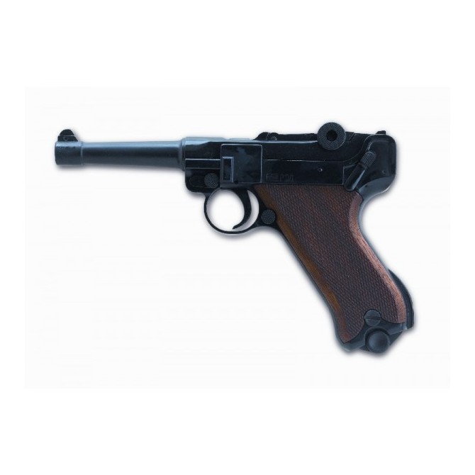 Pistola ME LUGER P-08 Emblemática pistola utilizada por el ejercito Alemán del Führer. Copia de la P08. De 220mm de longitud total y peso de 900gr. Con capacidad de 6 cartuchos del calibre 9mmPak. (VENTA LIBRE Mayores 18 años).