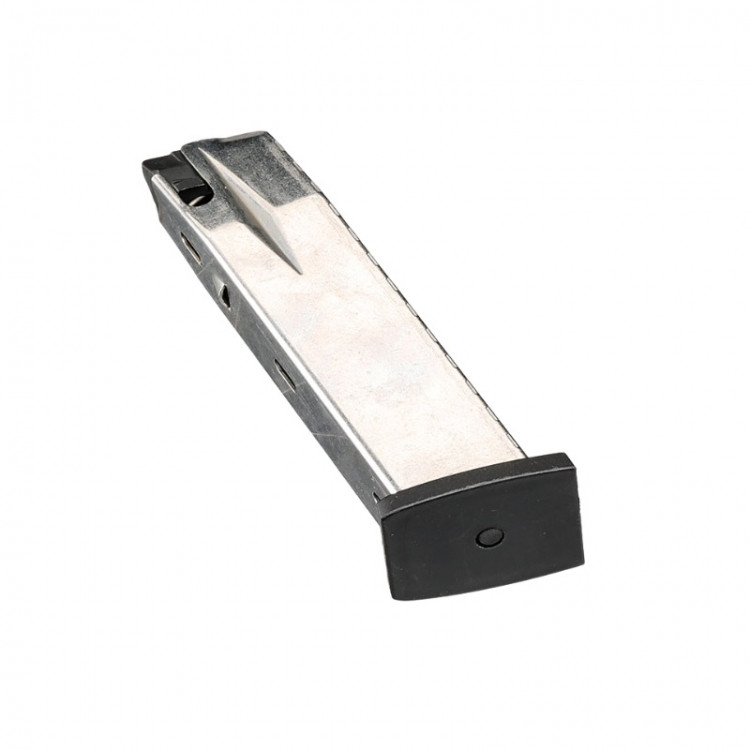 Cargador para arma de fogueo en calibre 9 mm P.A.K. Válido para el modelo ME SP15 Compact. Características: - Calibre 9 mm P.A.K. - Máximo 14 cartuchos.