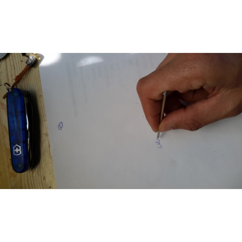 Bolígrafo para el alojamiento de las cachas en los modelos Swisschamp. En la foto junto con el palillo y las pinzas para ver el tamaño.
