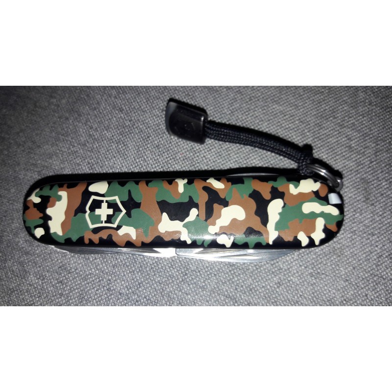 Victorinox huntsman camuflaje con rabiza negra. Quizás sea la rabiza que menos desentona con estas cachas y hace un conjunto muy bonito