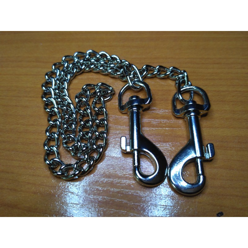Cadena con doble mosquetón grande, con eslabones de 1,8 mm de grosor y un largo total de 38 cm.