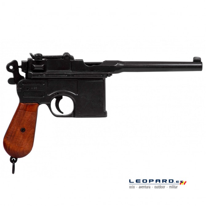 Esta fiel réplica del arma Mauser C96 es un modelo realmente impresionante y llamativo, fabricado con los mejores materiales y con similares dimensiones y peso que su hermana real. Desarrollada a finales del siglo XIX, sirvió en la 1ª Guerra Mundial al ejército alemán, así como posteriormente a Rusia o Estados Unidos.
