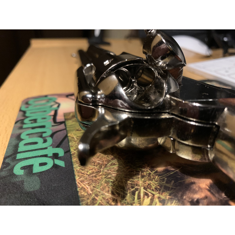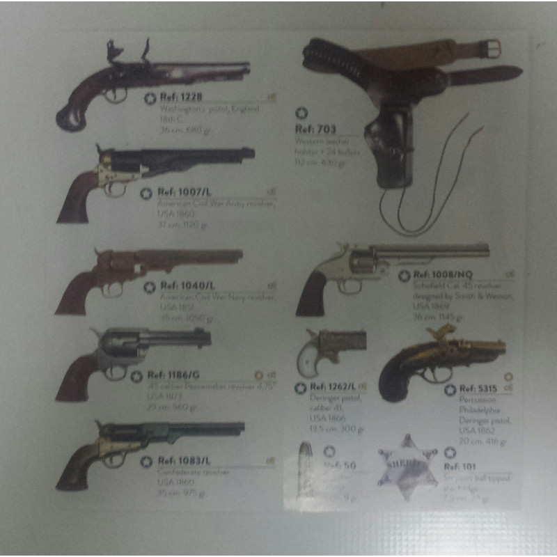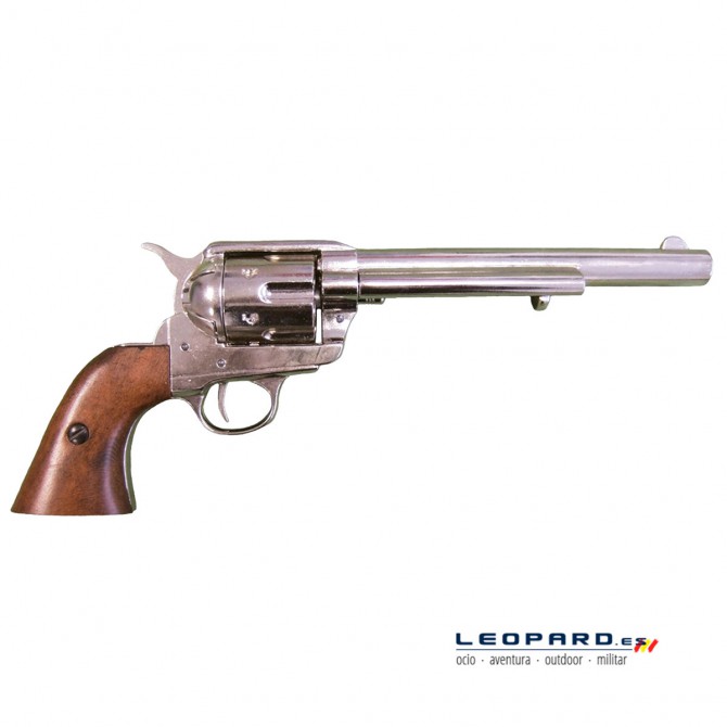 El clásico Revólver Peacemaker, también denominado Colt SAA, es el arma por excelencia del Viejo Oeste y de la Guerra de Secesión de los Estados Unidos. Contaba con un cañón de distintos tamaños y un tambor de seis cartuchos del calibre .45 Colt. Esta réplica oficial dispone de mismas dimensiones y peso, fabricada en metal inoxidable y madera.