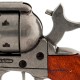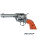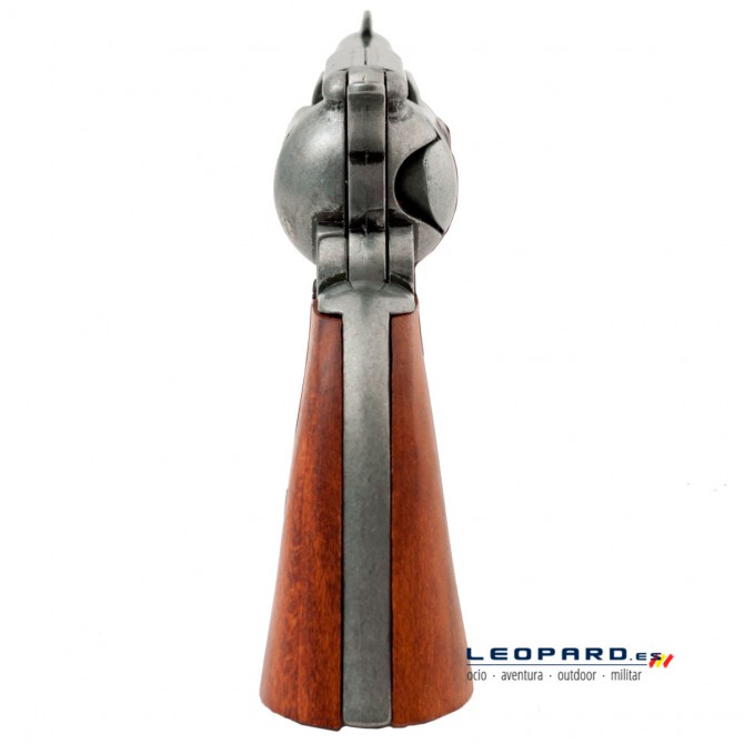 El clásico Revólver Peacemaker, también denominado Colt SAA, es el arma por excelencia del Viejo Oeste y de la Guerra de Secesión de los Estados Unidos. Contaba con un cañón de distintos tamaños y un tambor de seis cartuchos del calibre .45 Colt. Esta réplica oficial dispone de mismas dimensiones y peso, fabricada en metal inoxidable y madera.
