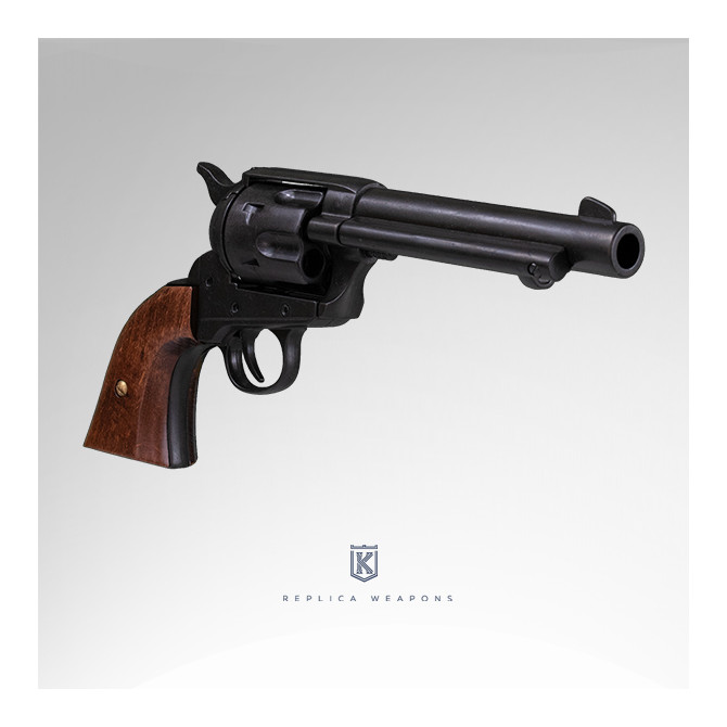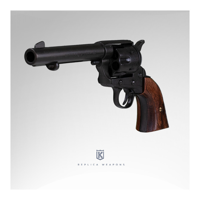 El revólver Peacemaker Colt 45 5'5" USA fue fabricado en el año 1873. Es una de las réplicas más realista, gracias a las medidas que tiene: 27 cm de longitud y cachas de madera.