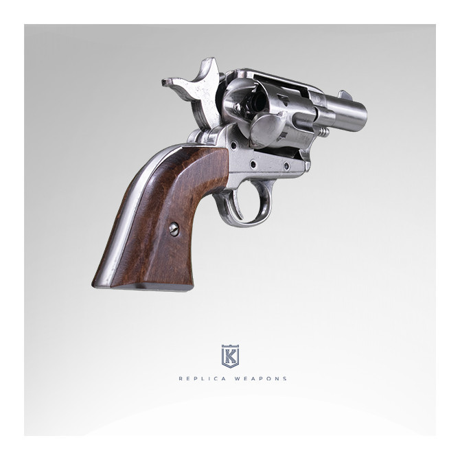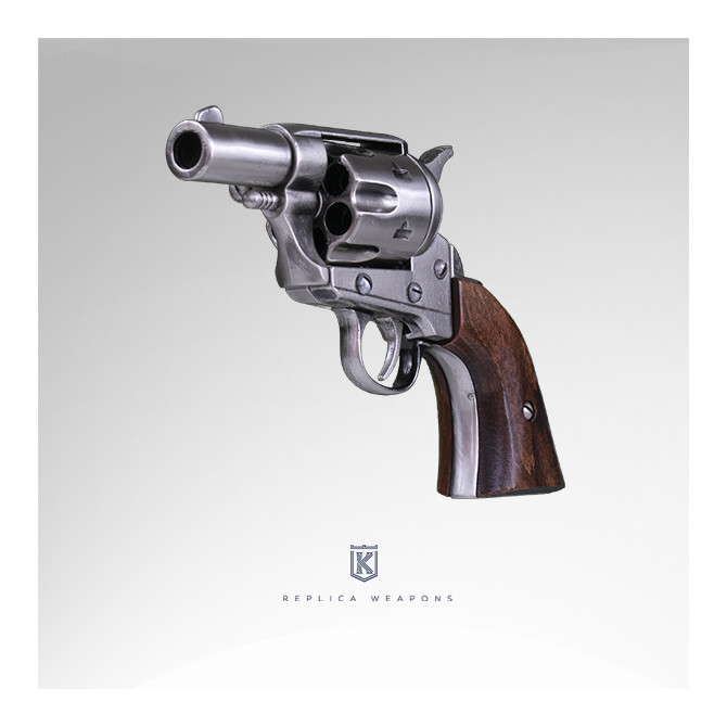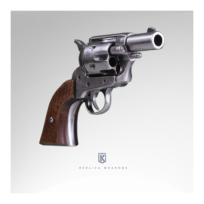 El revólver Colt Pocket 45. USA 1873 fue fabricado en el año 1873. Es una de las réplicas más realista, gracias a las medidas que tiene: 19 cm de longitud y 13 cm de cañón. Cachas fabricadas en madera.