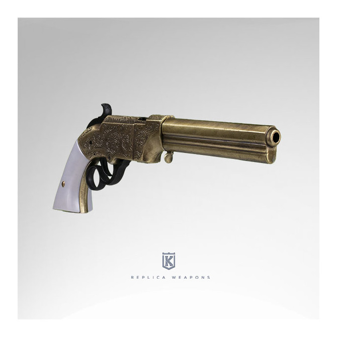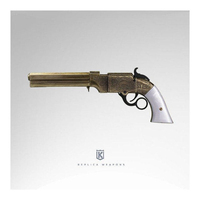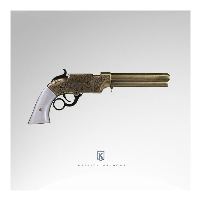 La pistola Volcanic 1854, es conocida por utilizarse en el viejo oeste, de hecho es una de las más famosas. Mantiene medidas similares a la original (33 cm). Esta réplica es de la primera generación que fabricó Smith&Wesson y destaca por tener todo el cañón octogonal a diferencia de sus predecesoras que era octogonal sólo en su primer tercio.