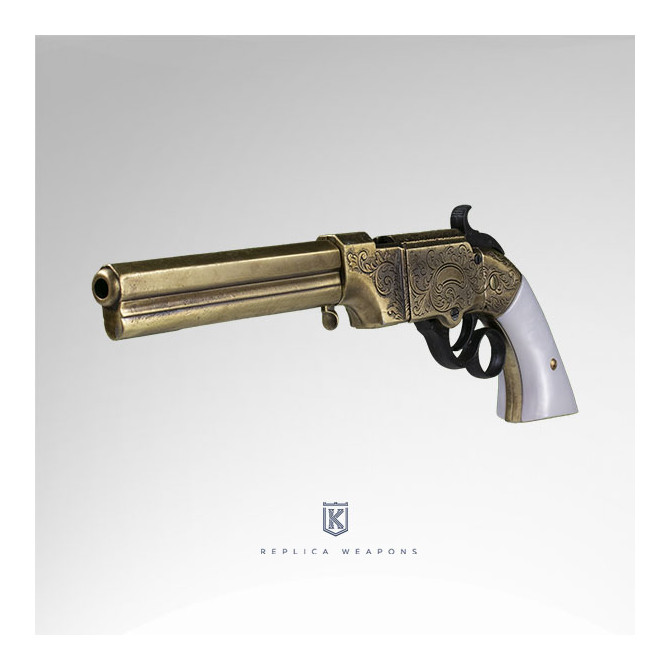 Estas réplicas pueden comprar los coleccionistas más exquisitos, además de poder usarlas en la industria del cine y teatro. Puede encontrar en nuestro catálogo varios acabados de este revólver, tanto de largo y colores del cañón, como de colores de empuñaduras