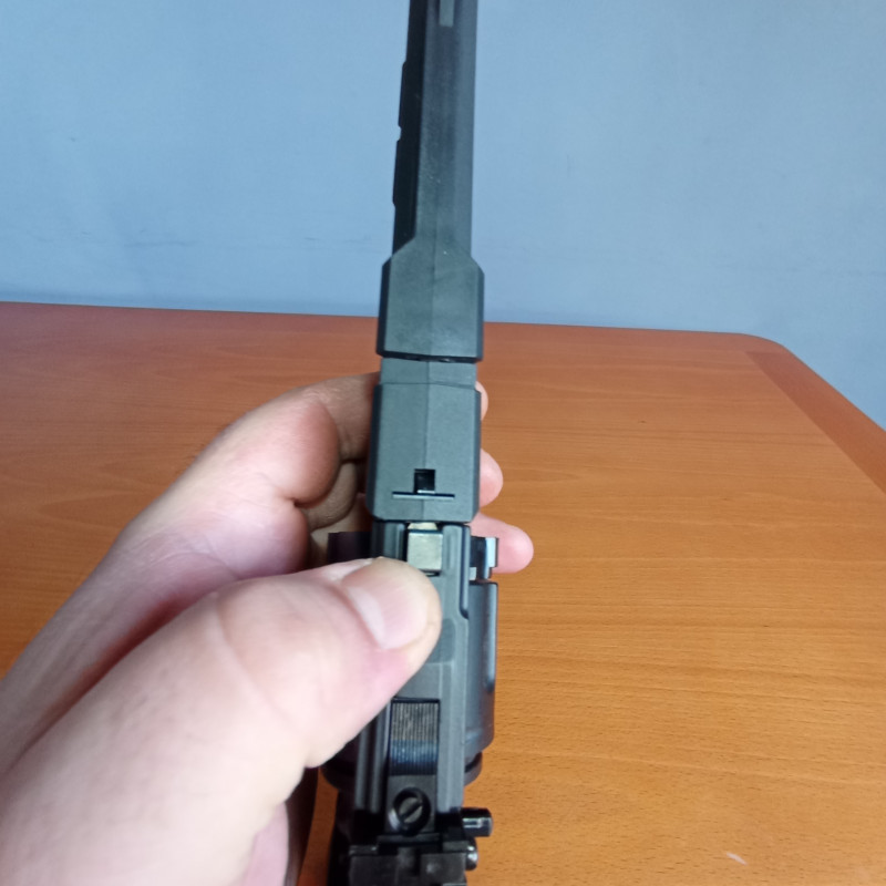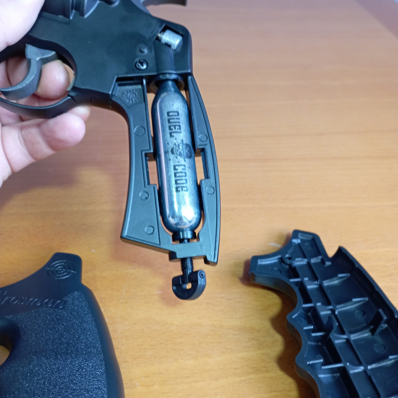 "Lo dicho anteriormente, para quitar o poner la cápsula de CO2 hay que desmontar las cachas de la empuñadura para poder apretar o aflojar el tornillo este detalle resta puntos al revólver."