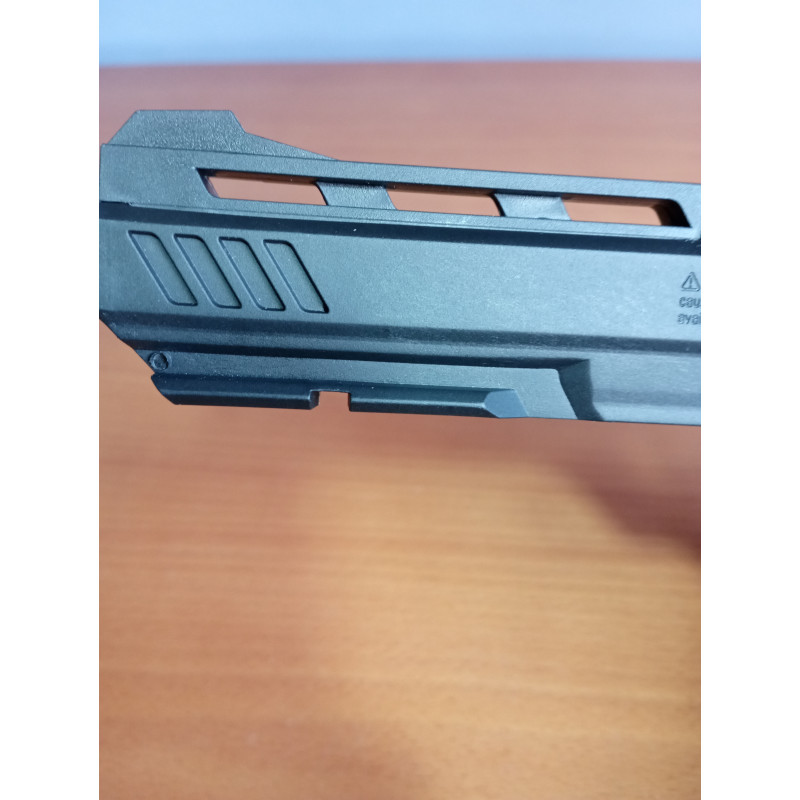 Otra característica definitoria es que en la empuñadura permite incorporar un bombona de Co2 aumentando la potencia de cada disparo y otorgándole una velocidad de salida al disparo de 133 m/s. Además, tiene un gatillo de simple y doble acción para adaptarse a las condiciones del tirador.