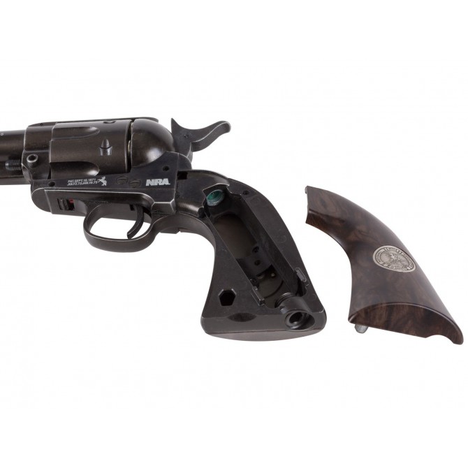 Esta Edición Limitada del Colt SAA .45 clásico incorpora un cuerpo fabricado en un tipo de metal inoxidable de alto rendimiento, por lo que su apariencia y peso será similar al real. Dispone de una cacha de fibra con el logotipo de la Asociación Nacional del Rifle y con una frase realmente increíble.