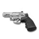 Diseño totalmente metálico, con un acabado niquelado brillante y una culata anatómica de polímero. Para mayor autenticidad, cuenta con 6 cartuchos de carga, cada uno para un balín, y un cañón de acero estriado para disparar con mucha más precisión.
