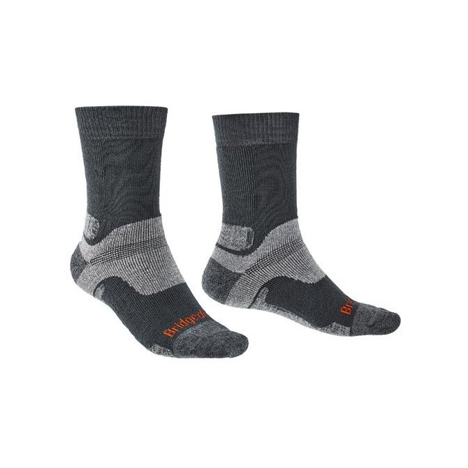 Estos calcetines están fabricados con lana virgen (26%), lana merino (18%), nylon (38%), endurofil (17%) y lycra (3%). Esta combinación única de fibras y lanas ofrecen una comodidad extra y además absorben la humedad. Así mismo, proporcionan un ajuste óptimo en todo momento y las costuras planas en la puntera evitan molestias.