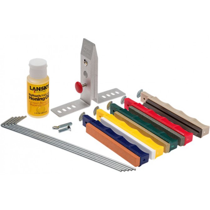 Este kit Professional System de Lansky lo completa una fantástica botella de aceite para lubricar las piezas de cuchillería en la fase previa y posterior del afilado. Además, incluyen las distintas guías para sujetar las piedras a las abrazaderas del soporte y un estuche ideal para portar el sistema de afilado a cualquier sitio.