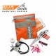 Kit basico muy practico para llevar al campo. Lleva navaja muy util,pedernal,cordura,algodon con el que hacer fuego,hilo de cobre, hilo de seda,cerillas,silvato, manual de señales internacionales de emergencia, funda estanca y otra funda para portarlo todo junto.