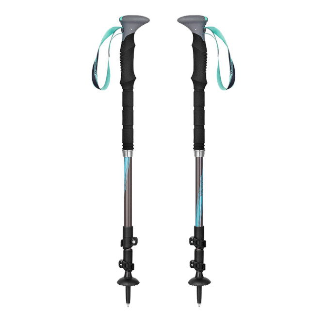La comodidad y la calidad excepcionales son aspectos cruciales de estos bastones de trekking. Los ejes ligeros de aleación de aluminio de grado aeroespacial 7075 brindan un agarre seguro, mientras que los robustos bloqueos de palanca externos garantizan un ajuste confiable. Las asas de goma EVA y las muñequeras suaves y ajustables proporcionan comodidad durante todo el día, incluso en terrenos exigentes.
