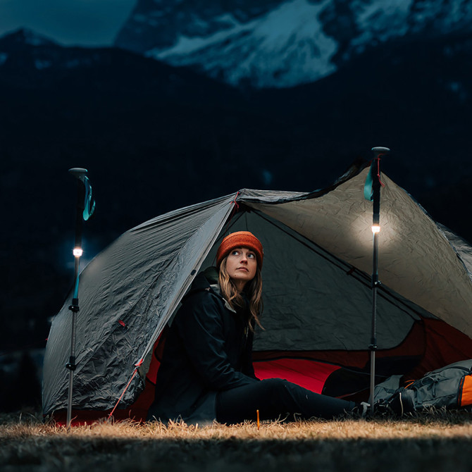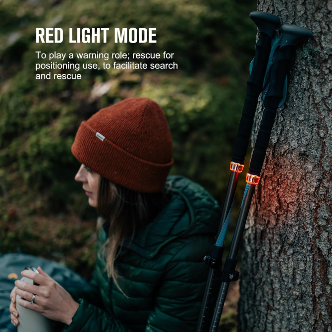 Lo que distingue aún más a estos bastones es su versatilidad de iluminación. Ofrecen 2 modos de luz, uno ideal para senderismo y otro para camping. El modo de movimiento presenta configuraciones de blanco neutro bajo, blanco neutro alto, rojo y rojo intermitente, mientras que el modo constante permite una atenuación continua en luz blanca neutra. Ambos modos incluyen una función de memoria para que puedas mantener tus preferencias de iluminación.
