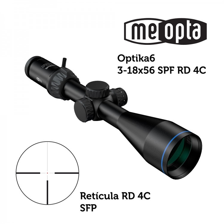 La marca Meopta ha diseñado el MeoPro Optika6 3-18x56 SFP-RD 4C, un visor que dispone de un rango de magnificación de 3 a 18x y un diámetro de campana de 56mm pensado para cazadores y tiradores. Asimismo, los modelos SFP cuentan con una protección contra el viento y la elevación.